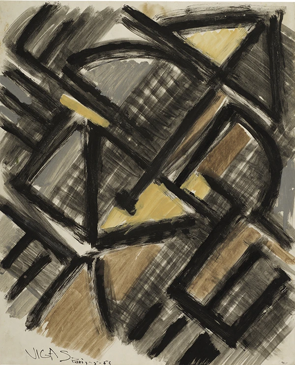 Gouache on cardstock glued to cardboard and fixed on canvas